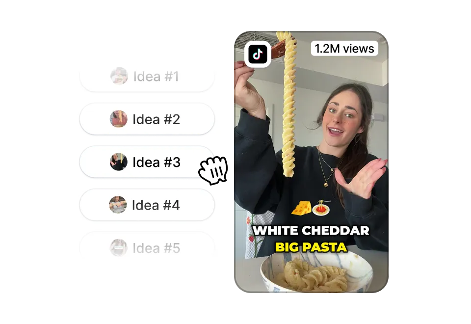 Receive a personalised list of high-potential video concepts, ready to shoot — so you can post first, grow faster, and never run out of winning ideas.