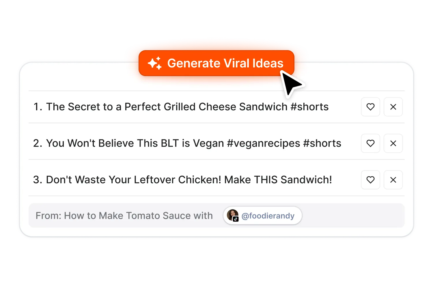 Our AI scans your niche daily, finds viral short-form videos, and delivers a shortlist of ready-to-shoot ideas tailored to your growth.